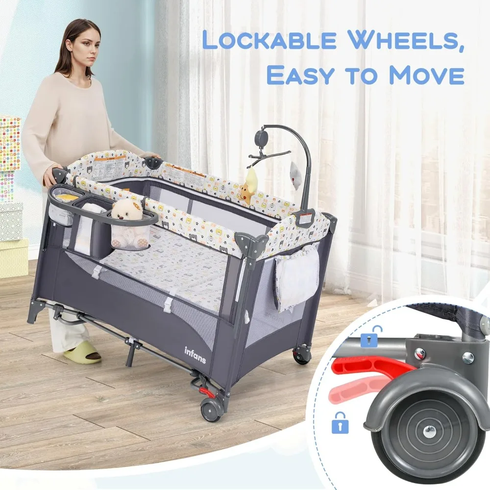 Give your little one comfort and convenience with our 5-in-1 Baby Bedside Sleeper & Playard! Designed to grow with your baby, it functions as a cozy bassinet, safe bedside sleeper, diaper changing station, and spacious playpen—all in one foldable design. The soft mattress and breathable mesh sides ensure restful sleep, while the hanging toys and music box keep your baby entertained. Lightweight and easy to assemble, it also includes a carry bag for travel or storage. Perfect for parents who want safety, style, and versatility in one smart nursery essential.